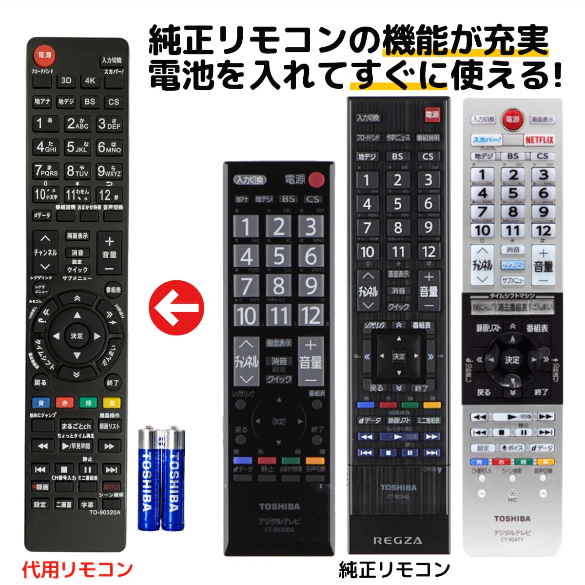 商品説明 ・純正リモコンに付いているボタンが設置されており、主な機能は全て使用できます ・東芝以外のメーカーを設定できかねます。 ・純正のリモコンと配置は異なります。 ・単4アルカリ乾電池付き ・リモコンのボタン機能がテレビにない場合やテレビの機能がボタンとして設置されていない場合は操作ができかねます。 対応リモコン CT-90320A CT-90320 CT-90372 CT-90466 CT-90453 CT-90425 CT-90379 CT-90467 CT-90442 CT-90451 CT-90396 CT-90469 CT-90458 CT-90443 CT-90479 CT-90471 CT-90481 CT-90463 CT-90478 CT-90459 CT-90479P 発送方法 ※ヤマト運輸ネコポス(ポスト投函)での発送となります。追跡番号も付きますのでご安心ください。