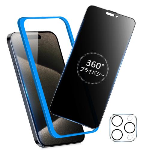 Xung Ho 360度 覗き見防止 i Phone15 Pro Max 用 ガラスフィルム 360 全方向 覗き見 防止 全面保護 フィルム 上下左右 見えない アイフォン15プロマックス 用 強化ガラス プライバシー 画面 保護 シート カメラフィルム付き/ガイド枠付き