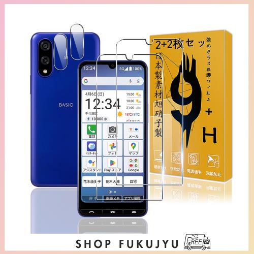 ■【2+2枚セット 指紋認証対応】 用 BASIO Active3 KYG04 ガラスフィルム 2枚 ベイシオ active3 フィルム + 2枚 カメラ保護フィルムセッ 【