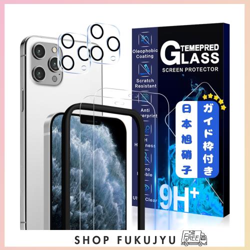 ■JCJCLYの【2枚液晶保護+2枚レンズ保護+ガイド枠】二次強化ガラス iPhone 11 Pro Max ガラスフィルム カメラフィルム カバー 保護フィルム