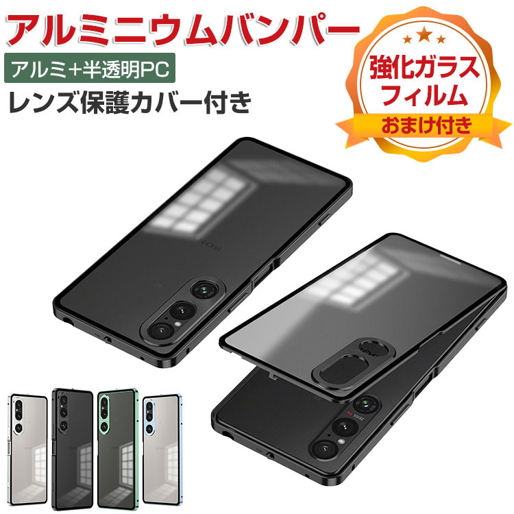 SONY Xperia 1 VI SO-51E/XQ-EC44/Xperia 10 VI SO-52E ケース 耐衝撃 カバー アルミバンパーケース 枠 フレーム 軽量 持ちやすい PC背面 高級感 金属 レンズ プロテクター カメラレンズ保護カバー エクスペリア 1 VI 10 VI 背面 カバー 強化ガラスフィルム おまけ付き