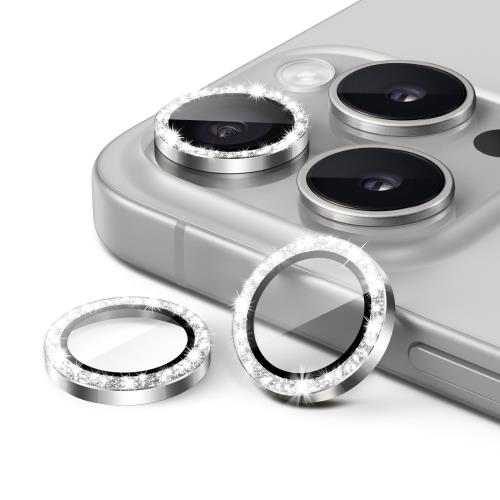 JEDirect i Phone 15 Pro 6.1 インチ/i Phone 15 Pro Max 6.7 インチ用 カメラレンズフィルム キラキラ ピカピカ 個別の9H強化ガラス金属リングカバー HDクリア 1セット (ホワイトチタニウム)