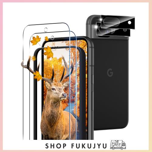 ■【2+2枚セット 指紋認証対応】 ガイド枠付き 用 Google Pixel 8A ガラスフィルム 2枚 ピクセル8A フィルム + 2枚 カメラ保護フィルムセッ