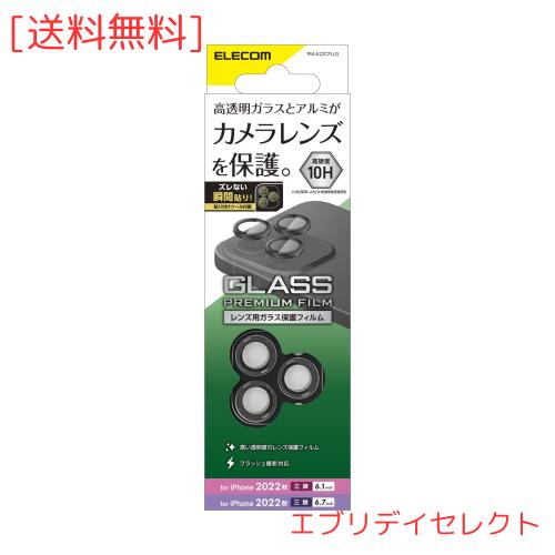 ■エレコム iPhone 14 Pro / 14 Pro Max レンズカバー カメラ保護 ガラスフィルム 3枚入り アルミフレーム 光沢 強化ガラス 表面硬度10H 指