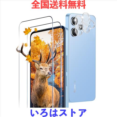 ■【2+2枚セット 指紋認証対応】 用 Xiaomi Redmi 12 5G ガラスフィルム 2枚 シャオミ レッドミー 12 フィルム + 2枚 カメラ保護フィルムセ