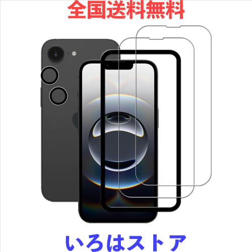 ■KPNS iphone 16e ガラスフィルム【2+2枚セット】ガイド枠付き 日本素材製 強化ガラス iPhone16e 用 ガラスフィルム カメラフィルム カバ