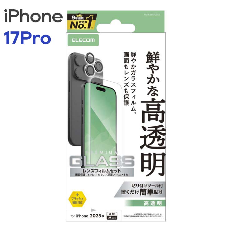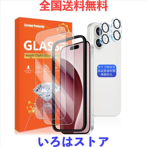 ■iPhone17Pro ガラスフィルム カメラレンズフィルム付 高透明 強化ガラス 10H 指紋防止 気泡防止 飛散防止 貼り付けツール付