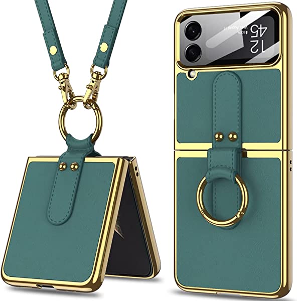 【リング式+カメラフィルム付き】 対応Galaxy Z Flip 4 2022 SCG17/SC-54C ケース ストラップ付き リング付き カメラ保護 メッキ加工 スタンド機能 お洒落 ギャラクシー ゼット フリップ4 カバー シート 耐衝撃性 指紋防止 擦り傷防止 Z Flip 4 保護ケース 超軽量 着脱簡単 携帯便利(グリーン)