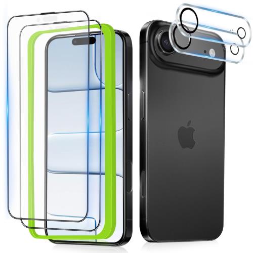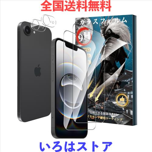 ■【2+2枚セット】iPhone 16e ガラスフィルム(2枚)+カメラフィルム(2枚) 硬度9H 強化ガラス 旭硝子製 疎水疎油 指紋?汚れ防止 Greerass 液