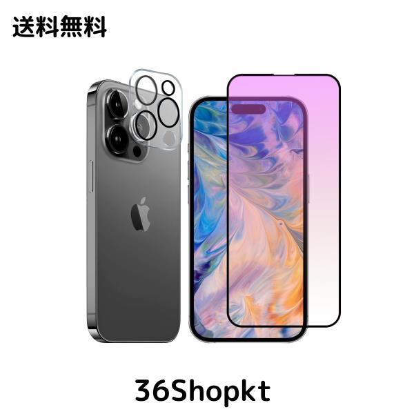 ■iphone15 pro max 用 ガラスフィルム「ブルーライトカット」+ アイフォン 15 pro max用カメラフィルム (1枚) Hohotoon【旭硝子素材製】炭