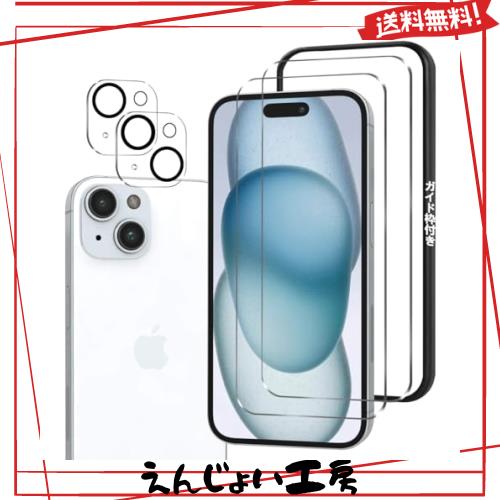 ■Huy iphone 15 ガラスフィルム【ガイド枠】- 旭硝子仕様 アイフォン15 保護フィルム 2枚 + いphone15 フィルム カメラ 2枚 iphone 15 用