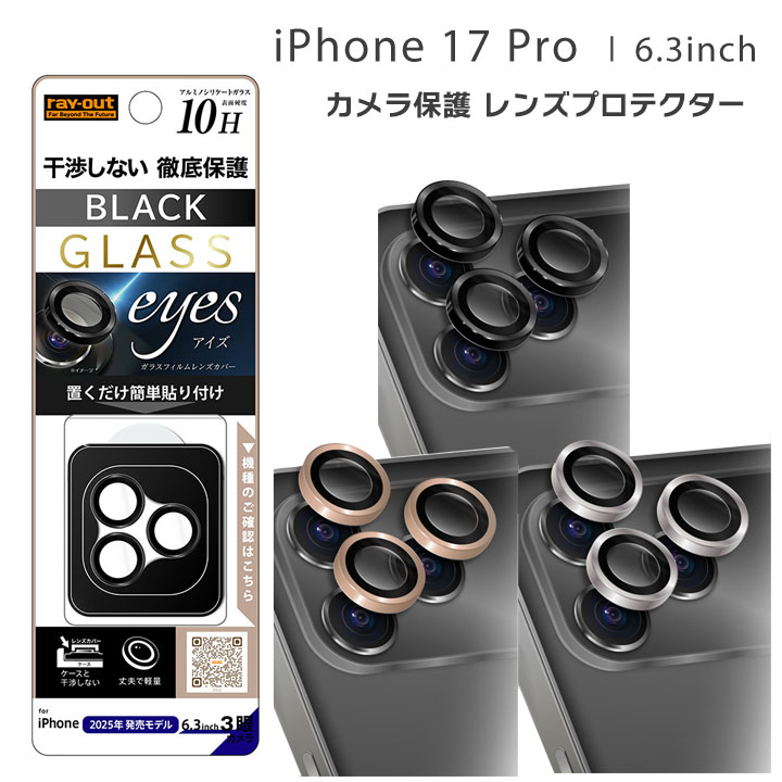 ■iPhone17Pro 6.3インチ カメラ保護 レンズプロテクター eyes 硬度10H アイフォン カメラレンズ保護 ブラック ゴールド シルバー メール便