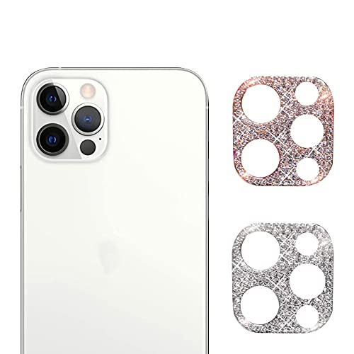 ■CMD カメラフィルム レンズ キラキラ 2個セット 保護 フィルム カバー キズ防止 シルバー&ローズピン iPhone12 pro適用