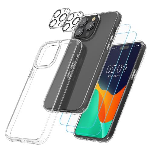 kwmobile 1x 保護セット i Phone 15 Pro対応 スマホケース 保護フィルム - 1in1 カメラ保護 耐衝撃 黄変防止 - PC TPU 強化ガラス
