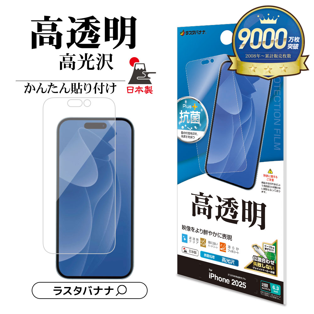 ■iPhone17 iPhone17 Pro フィルム 平面保護 高光沢 高透明 クリア 抗菌 日本製 貼り付けガイド 割れない アイフォン 保護フィルム ラスタ