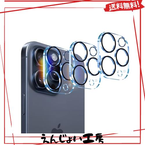 ■Seninhi 3枚 カメラフィルム iPhone 15 Pro / iPhone15 Pro Max 用 カメラレンズ 保護 カバー 強化ガラス 全面保護 黒縁取り 露出オーバ