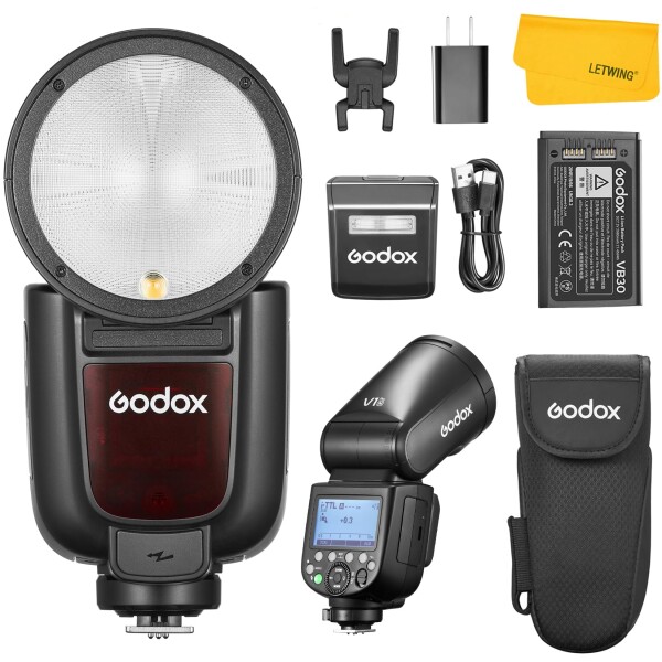 ■GODOX V1 Pro N V1ProN 丸形ヘッド TTL カメラフラッシュ スピードライト 2.4G HSS 1/8000s 着脱式サブフラッシュ設計 内蔵モデリングラ
