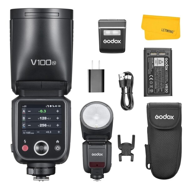 ■GODOX V100-N V100 N ラウンドヘッド TTL カメラ フラッシュ スピードライト Nikon カメラ用, 2.4G ワイヤレス HSS 1/8000s タッチスクリ