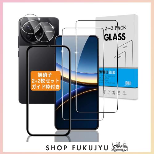 ■【2+2枚セット ガイド枠付き】 対応 Xiaomi Poco F7 Pro / F7 Ultra ガラスフィルム + カメラフィルム 【日本旭硝子 硬度9H】 対応 Poco