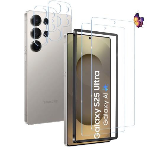 2+2枚セットGalaxy S25 Ultra SC-52F SCG32 ラスフィルム(2枚)+カメラフィルム(2枚) ギャラクシーS25ウルトラ 用の 保護フィルム ワンタッチ貼付け/気泡ゼロ/ケースと干渉せず/硬度9H/飛散防止/指紋防止