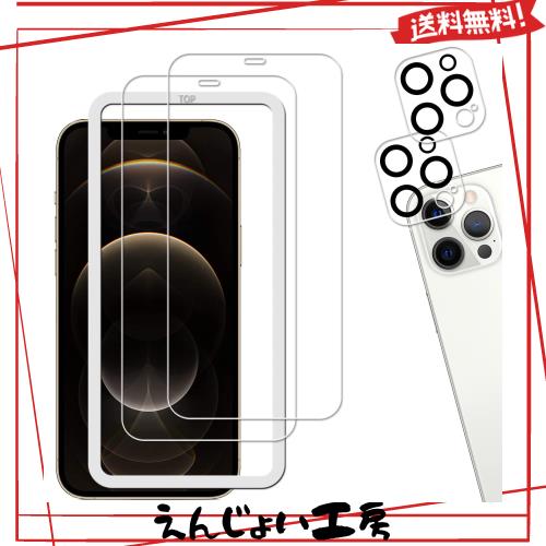 ■【2+2枚セット】ガイド枠付き KPNS 日本素材製 強化ガラス iPhone12 Pro Max 用 ガラスフィルム カメラフィルム カバー 保護フィルム