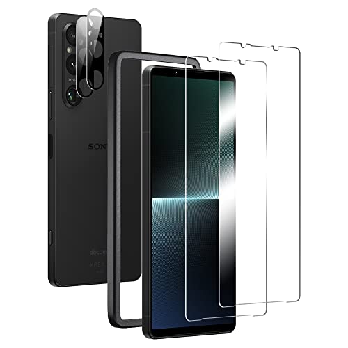 Xperia 1 V ガラスフィルム 2枚 + カメラフィルム 2枚 ガイド枠付き 強化ガラス 液晶保護 9H硬度 耐衝撃 気泡防止 高感度タッチ 指紋防止 防水撥油 飛散防止 エクスペリア 1 V SOG10 SO-51D