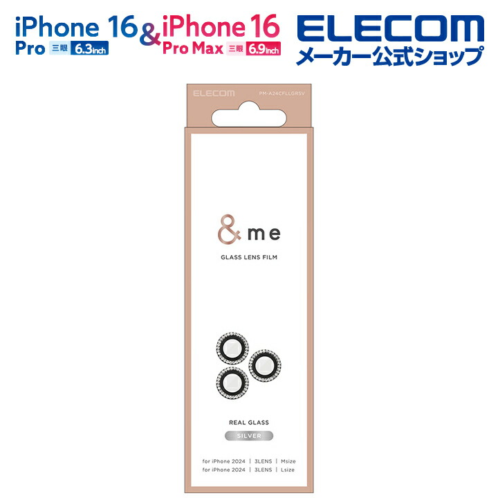 ■エレコム iPhone16 Pro / Pro MAX 3眼 用 &me カメラレンズガラスフィルム ラインストーン 3眼 レンズ シルバー┃PM-A24CFLLGRSV