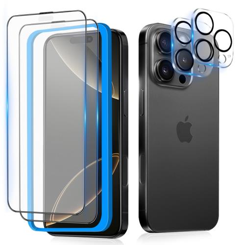 アンチグレア i Phone16Pro Max 用 ガラスフィルム さらさら 2枚 液晶保護 フィルム ゲーム用 タッチ感 強化ガラス サラサラ 反射防止/指紋防止/気泡ゼロ/貼り付け簡単/ガイド枠付き+カメラフィルム2枚
