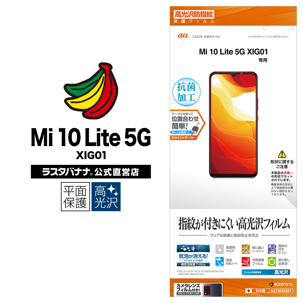 ■ラスタバナナ Mi10 Lite 5G XIG01 フィルム 平面保護 高光沢防指紋 抗菌 ミー10 ライト 液晶保護 G2756XIG01