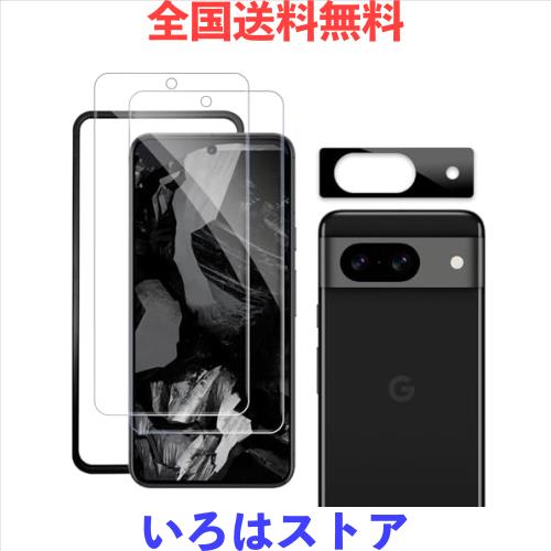 ■Google Pixel 8A 対応 ガラスフィルム(2枚入り)+カメラフィルム(1枚入り) ガイド枠付き 貼り付け簡単 硬度9H 耐衝撃 飛散防止 高透