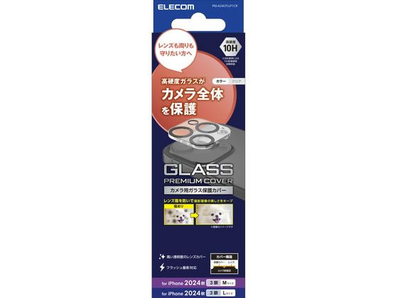 i Phone16Pro/MAXカメラガラスフィルム クリア エレコム PM-A24CFLLP1CR端末のカメラレンズを傷や汚れから守る、リアルガラス採用のカメラ保護カバーです。