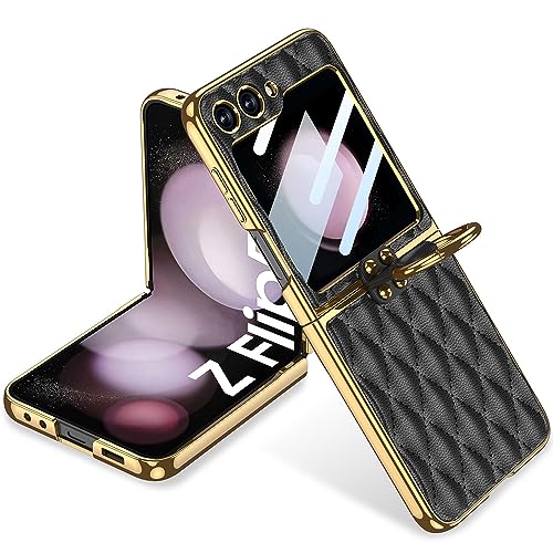 Galaxy Z Flip 5 2023 SC-54D / SCG23 ケース リング付き フィルム付き カメラ保護 スタンド機能 お洒落 ギャラクシー ゼット フリップ5 SCG23 カバー シート 耐衝撃性 指紋防止 擦り傷防止 Z Flip 5 SC-54D 保護ケース (ブラック)