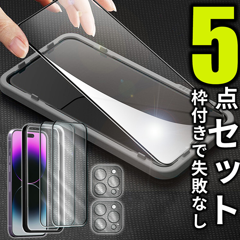 ■iPhone 強化ガラスフィルム カメラ保護フィルム 2枚入り セット 貼り付けガイド枠付き 光沢 反射防止