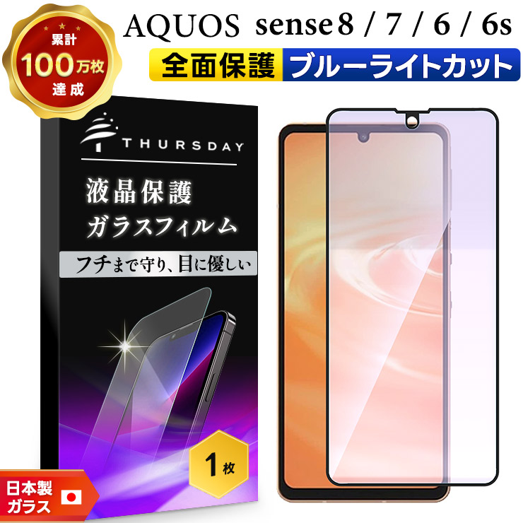 ■AQUOS sense8 sense7 全面保護 ブルーライト ガラスフィルム ガラス sense6 sense6s フィルム 強化ガラス 液晶 保護 フィルム 硬度9H