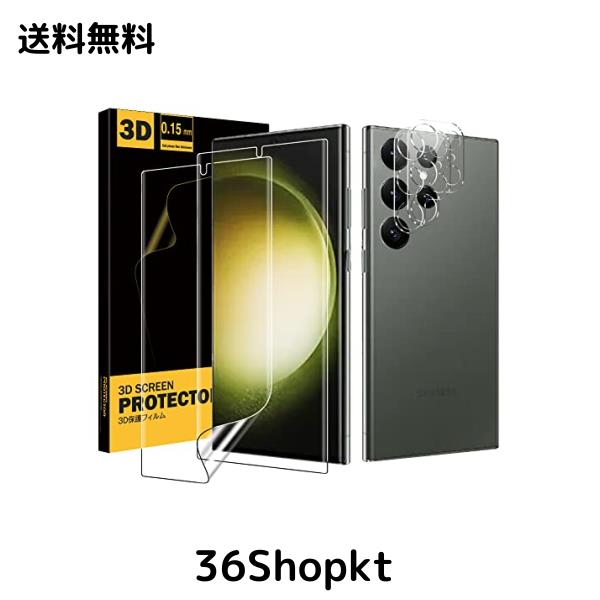 ■Galaxy S23 Ultra フィルム 2枚 + カメラフィルム 2枚【指紋認証対応】柔らかいTPU素材 【簡単な貼り付け方・ガイド枠付き】気泡ゼロ 傷