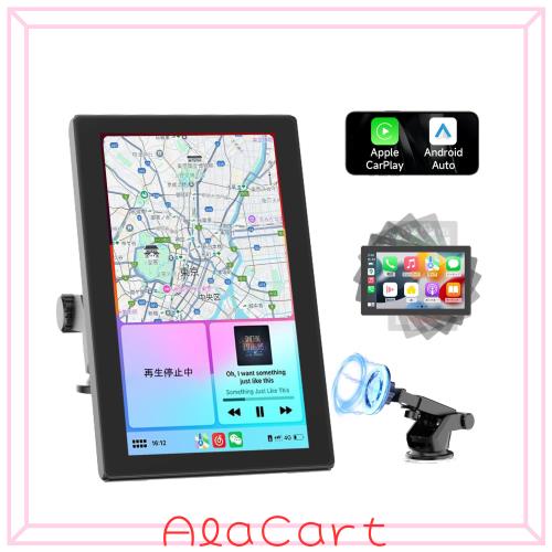 ■Spedal ディスプレイ オーディオ【最新型 磁気吸着スタンド 横画面・縦画面手動切替】7インチカーオーディオ一体型 CarPlay&Android Aut