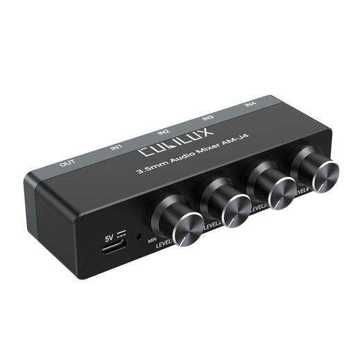 ■CUBILUX 3.5MM オーディオ ミキサー、4ウェイ ステレオ/モノAUX ミキサー、超低ノイズ ミニ ライン、独立音量調整
