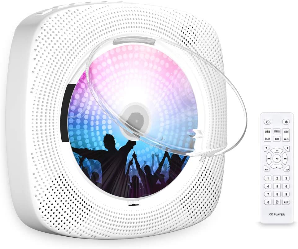 CDプレーヤー おしゃれ 壁掛け 卓上 PSE認証済み 日本語説明書付き 1台多役 Hi Fi高音質 スピーカー FMラジオプレーヤー USB対応