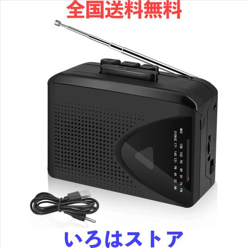 ■Levigo カセットプレーヤー カセットテープ ポータブル ラジオ AM/FMラジオ テープ再生 軽量 コンパクト USBケーブル付き ブラック