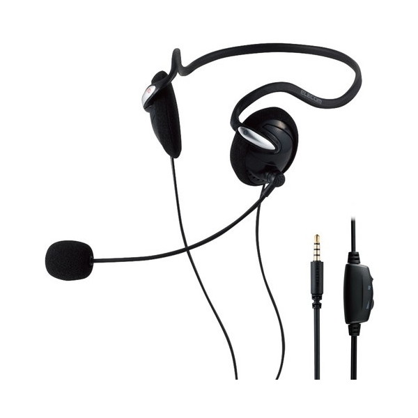 ■HS-NB03STBK ブラック ヘッドホン ヘッドセット 無指向性 マイク付き 有線 4極 3.5mm 接続 両耳 ネックバンドタイプ ELECOM