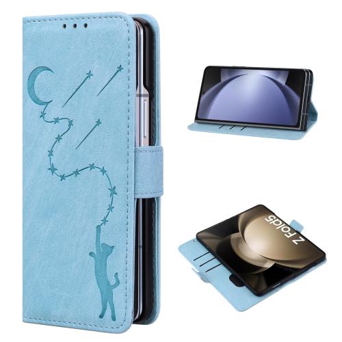 Galaxy z fold5 ケース ギャラクシーz fold5 ケース 手帳型 galaxy イヤホン z fold5 ケース SC-55D SCG22 用 カバー スタンド機能 マグネット カード収納 耐衝撃 全面保護 sペン galaxy zfold5 ケース 可愛い 猫柄 柔らかいTPU Samsung Galaxy Z Fold5 カバー 適応 7.6 インチ - ライトブルー