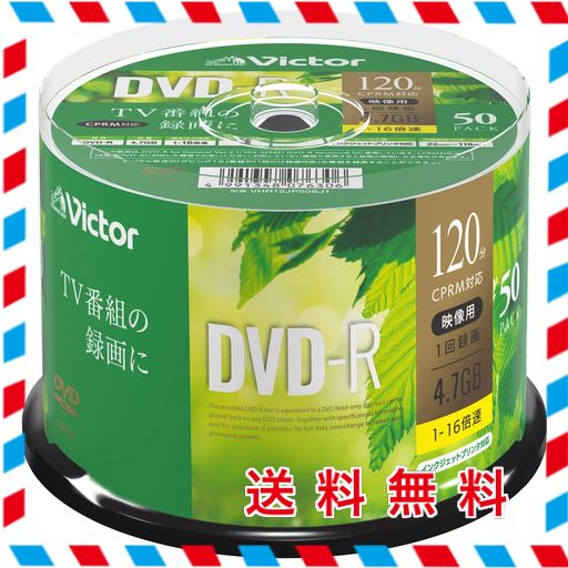 ■ビクター VICTOR 1回録画用 DVD-R CPRM 120分 50枚 ホワイトプリンタブル 片面1層 1-16倍速 VHR12JP50SJ1