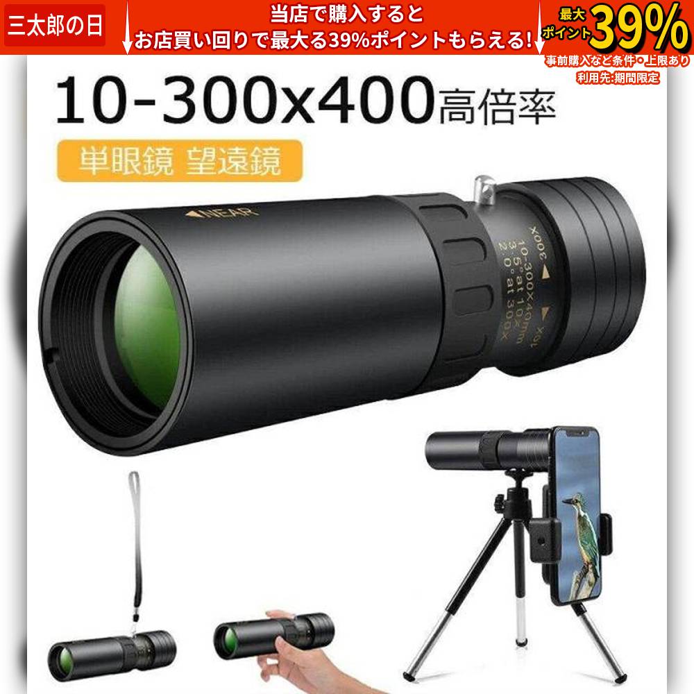 単眼鏡 望遠鏡 10-300x40 小型 三脚付き 軍用望遠鏡-4K 高倍率 ズーム式 高解像度 高透過率 手ぶれ防止用 防水霧 耐衝撃望遠鏡 使用簡単 軽量 コンパクト
