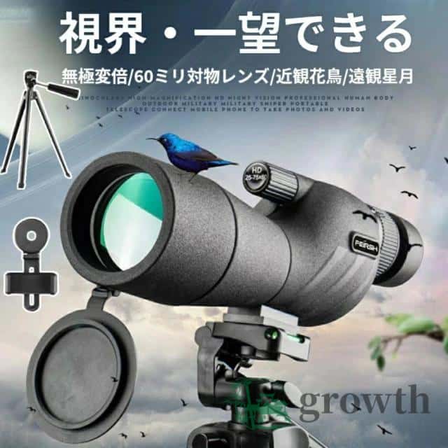 ■単眼鏡 望遠鏡 高倍率25-75X60 軽量 スマホ 望遠レンズ 多機能三脚 ストラップ 高級プリズム 望遠レンズ 超望遠レンズ スマホ対応 IPX7防