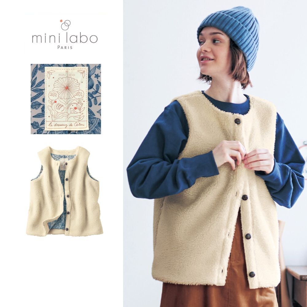 ーデザイン・スタイリングー・暖かくそれでいてチャーミングなボアベスト・シャツやニット、ワンピなど何にでも合わせやすい・秋冬コーデに大活躍・アームホールが広めなので腕周りが動かしやすい・両脇ポケット付きで便利・裏地はすべりが良く心地いい・内生地はシックで華やかなお花のデザイン・「セリーヌのクローゼット」のスペシャルネーム付き・丸みのあるバスケットボタンもポイント・少し広がったテントラインで後ろ姿もキュートー素材ー・表はもこもこのボア素材ミニラボパリのデザイナーが生み出す大人かわいい世界「mini labo(ミニラボ)」は、パリで活躍する2人のクリエイター、キャロリーヌとセリーヌによるクリエイションブランド。パリの気分が詰まった、華やかで夢のあるミニラボワールドをつくりあげています。