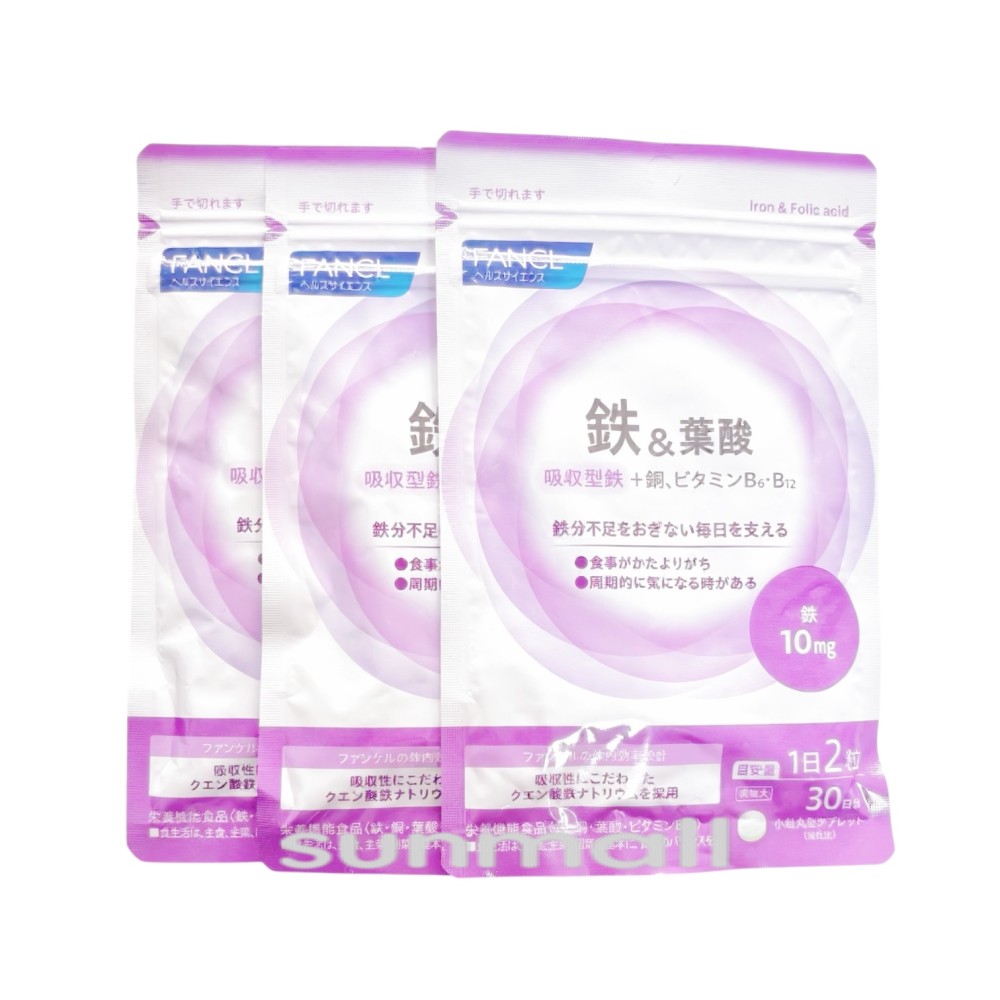 ■fancl ファンケル 鉄&葉酸(30日分)X3袋【お徳用3点セット】(女性にうれしい栄養補助サプリ)携帯に便利なパウチ入りパッケージ タブレ