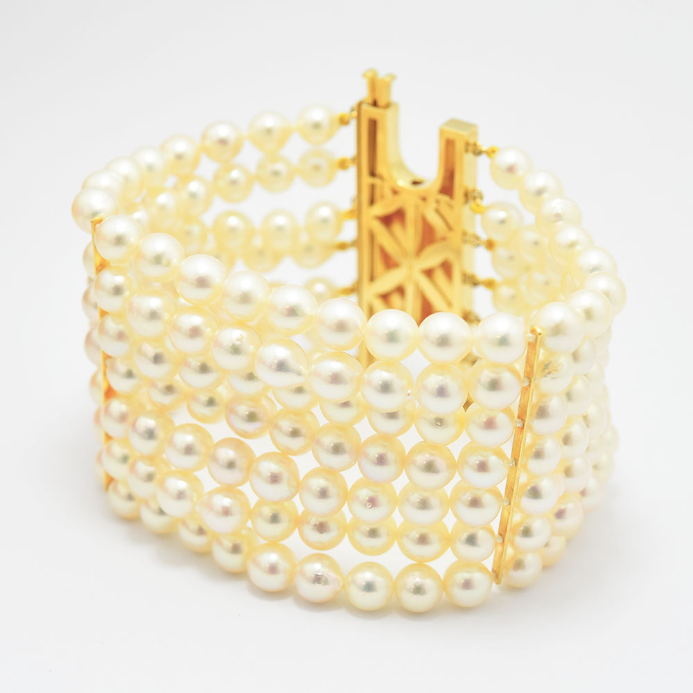 DETAIL ■サイズ 約19cm / 幅:約50.0mm / 約101.9g / パール:約6.2~7.0mm ■素材 K18 / あこや真珠 ■付属品 保存袋 ■状態・コメント テリの良いあこや真珠をふんだんに使用した、エレガントでゴージャスなミキモトのパールブレスレットです。正規店にて糸交換済みです。新品仕上げ済みです。 ご質問お待ちしております。お気軽にご連絡ください。撮影にはデジタルカメラを使用しております。実際の商品と色や質感が異なる場合がございますのでご了承ください。当店で中古商材を中心に取り扱っております。すべての状態を掲載できない場合もございます。気になる点は事前にお問い合わせをお願いいたします。神経質な方や中古商材とご理解いただけない方は入札をご遠慮ください。