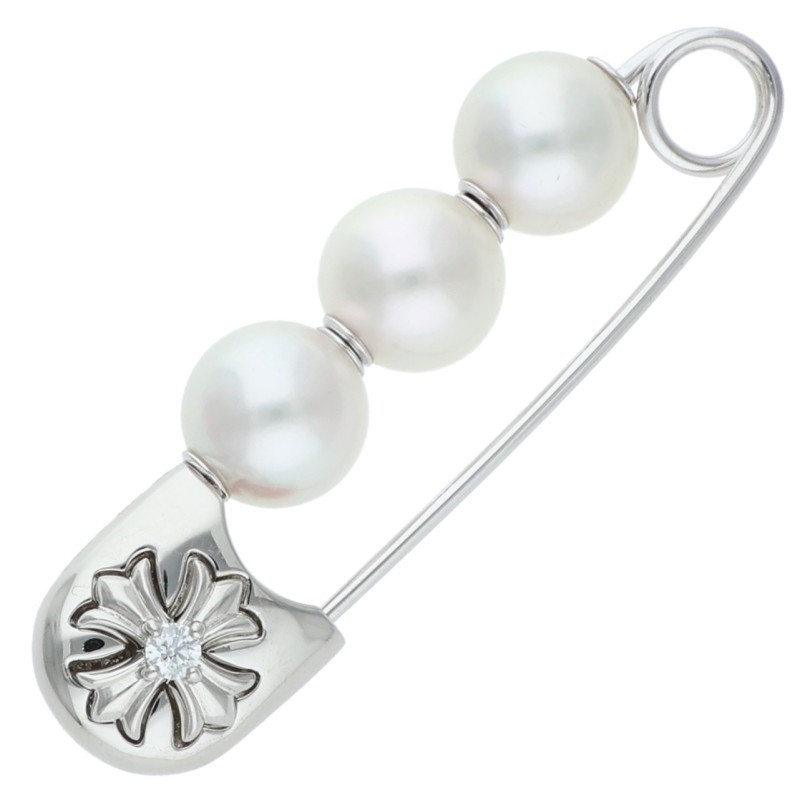 ■クロムハーツ ミキモト CHプラスパールホワイトゴールドピンブローチ 中古 GZ11