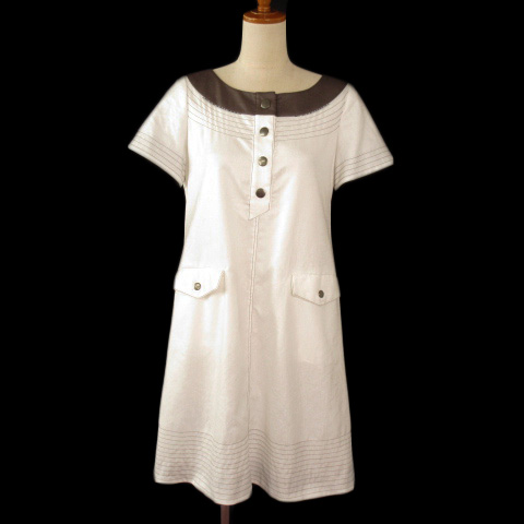 ■【中古】アラミス ARAMIS ワンピース プルオーバー ステッチ 半袖 40 白 ホワイト レディース