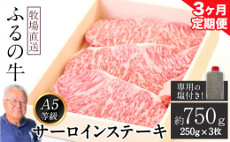 ■【ふるさと納税】【3ヶ月定期便】ふるの牛(黒毛和牛)特選サーロインステーキ 750g(250g×3枚) ゲランド塩付き A5 有限会社ふるの《お申